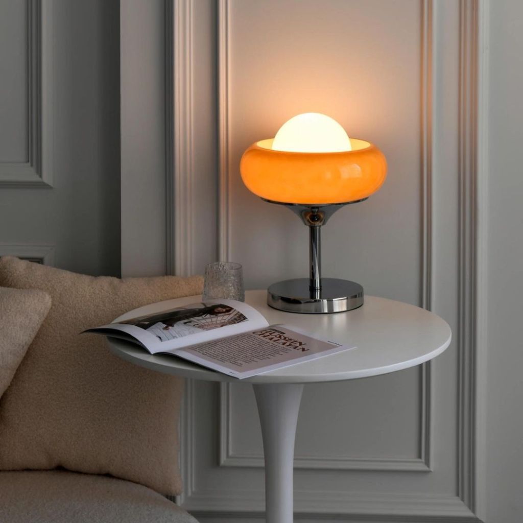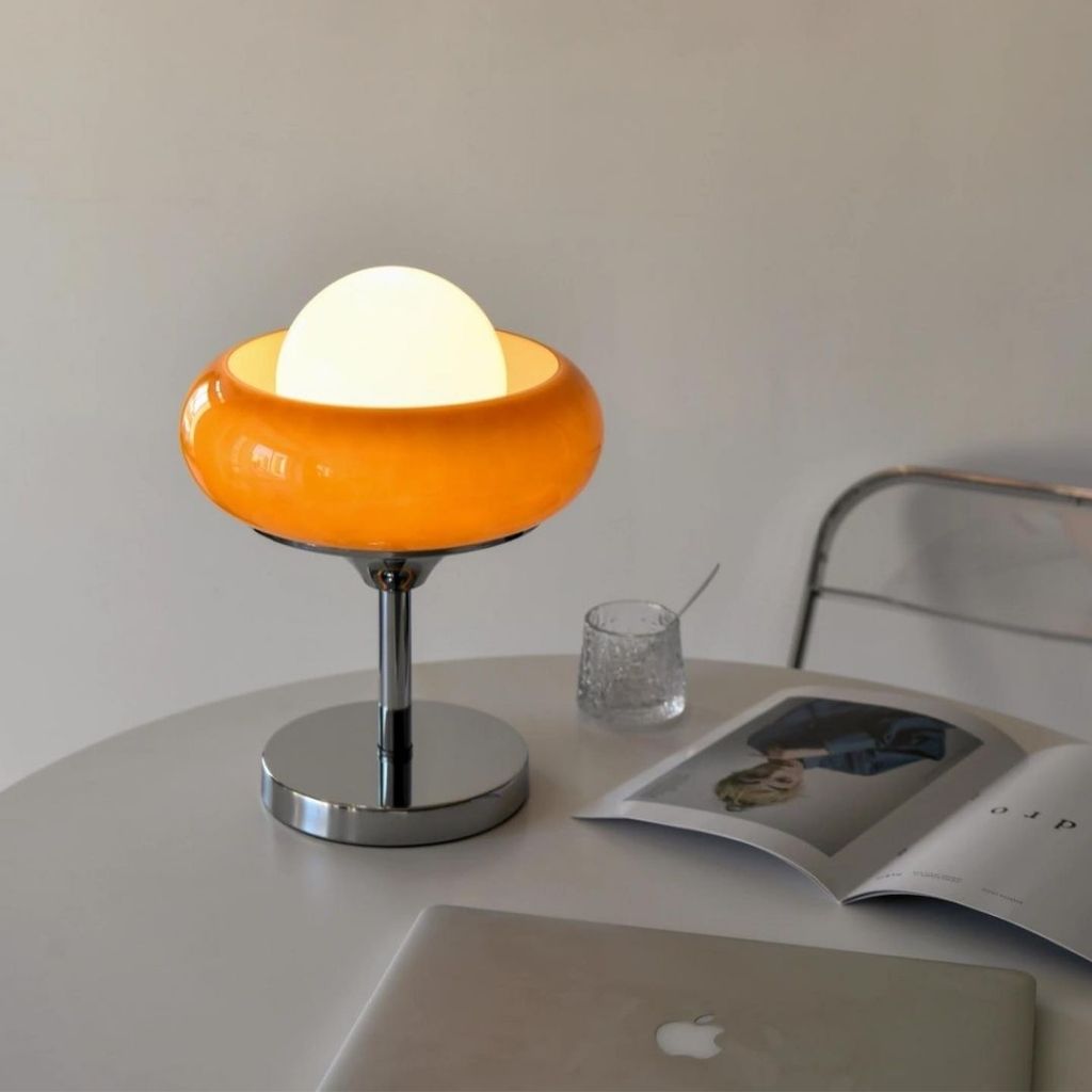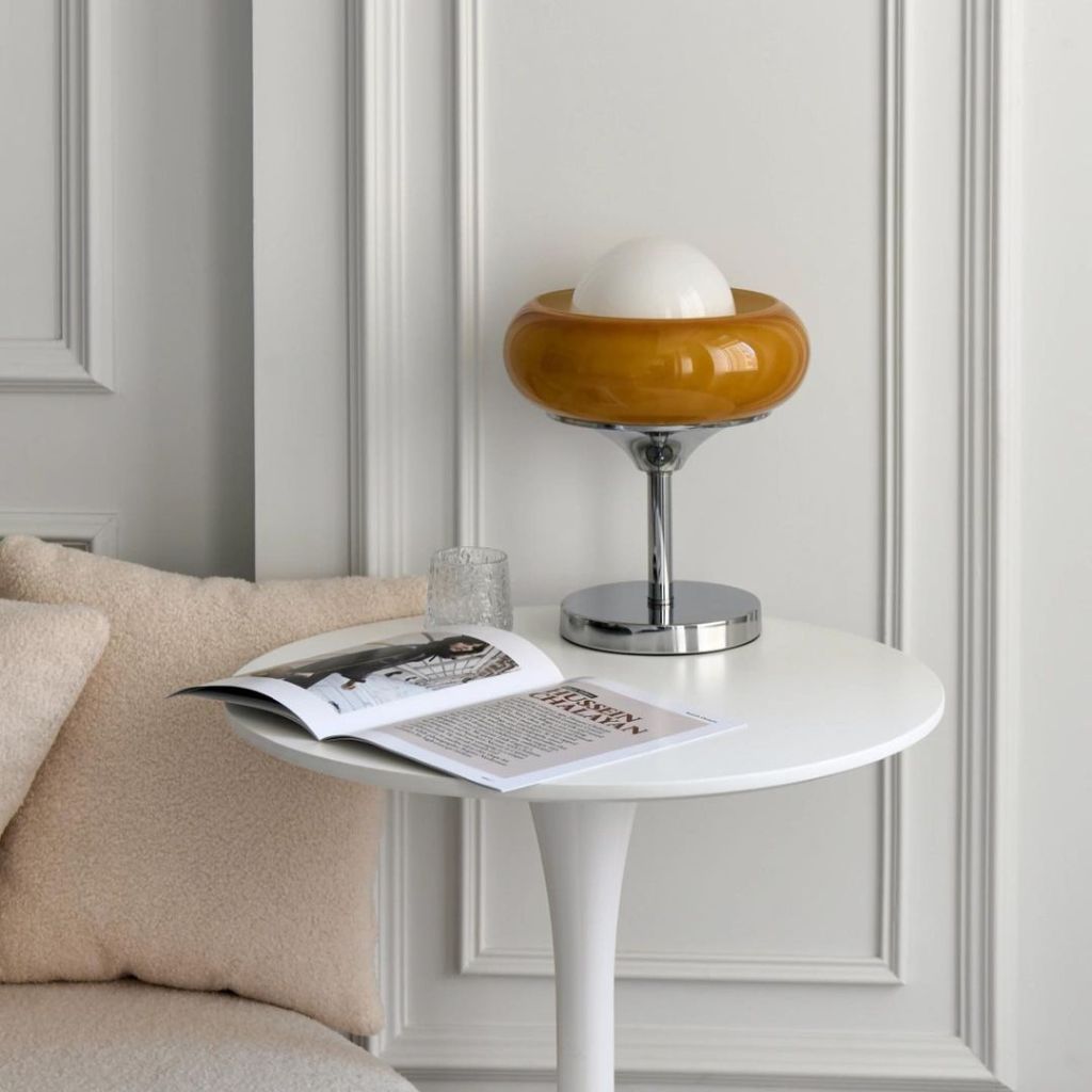 V. Đèn Bàn Egg Tart: Hòa Quyện Thủy Tinh và Chrome