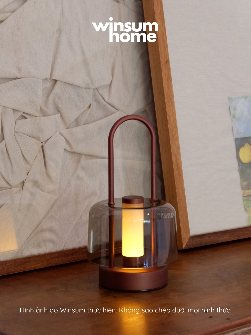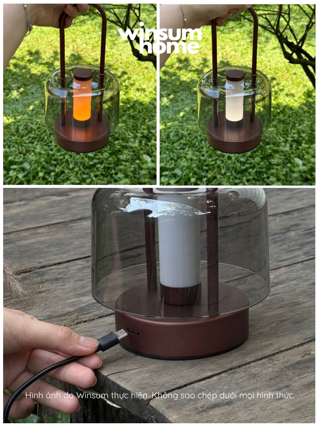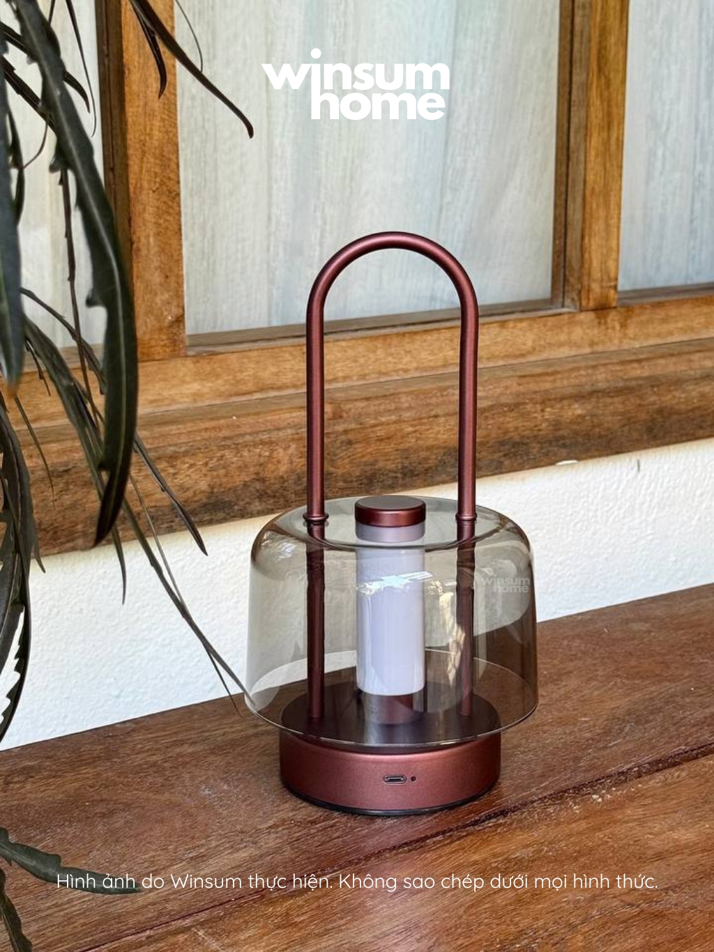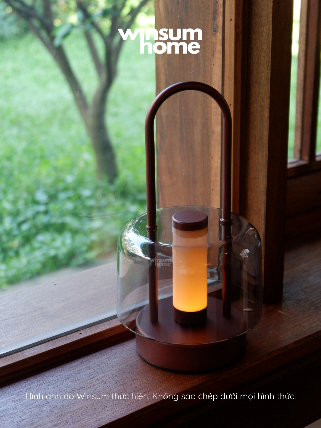 Đèn bàn LED thiết kế hiện đại với thân kim loại mờ kết hợp chụp đèn thủy tinh, tạo ánh sáng dịu nhẹ và sang trọng. Đèn có tay xách tiện lợi, có thể sử dụng linh hoạt trong nhà hoặc mang theo khi đi dã ngoại, cắm trại. Đèn hoạt động không dây, dễ dàng đặt ở bất kỳ vị trí nào.