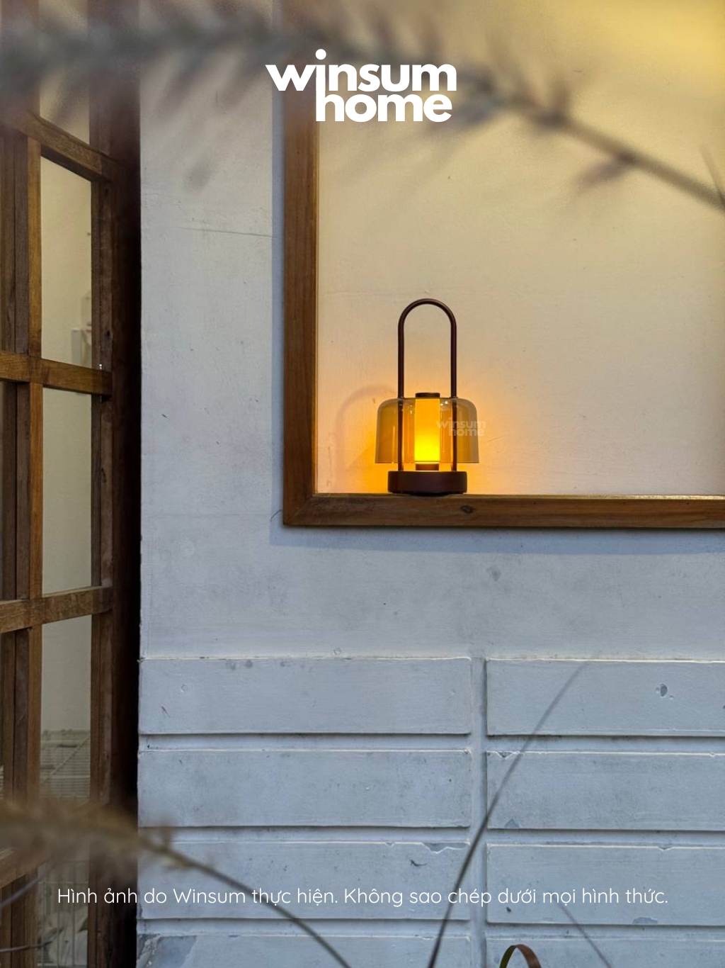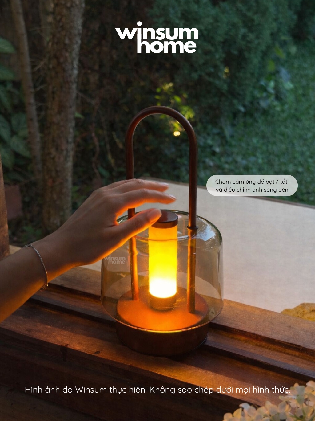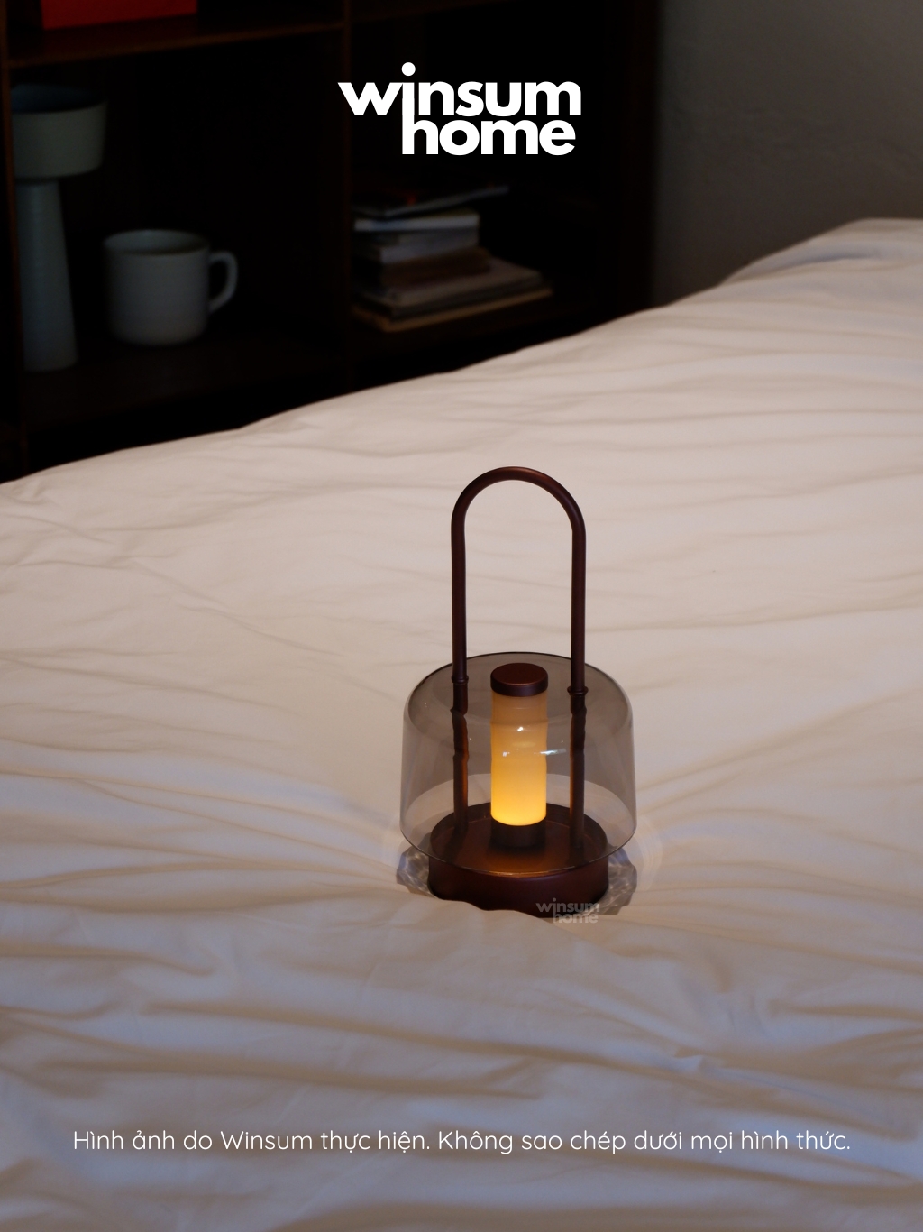 Đèn bàn LED thiết kế hiện đại với thân kim loại mờ kết hợp chụp đèn thủy tinh, tạo ánh sáng dịu nhẹ và sang trọng. Đèn có tay xách tiện lợi, có thể sử dụng linh hoạt trong nhà hoặc mang theo khi đi dã ngoại, cắm trại. Đèn hoạt động không dây, dễ dàng đặt ở bất kỳ vị trí nào.