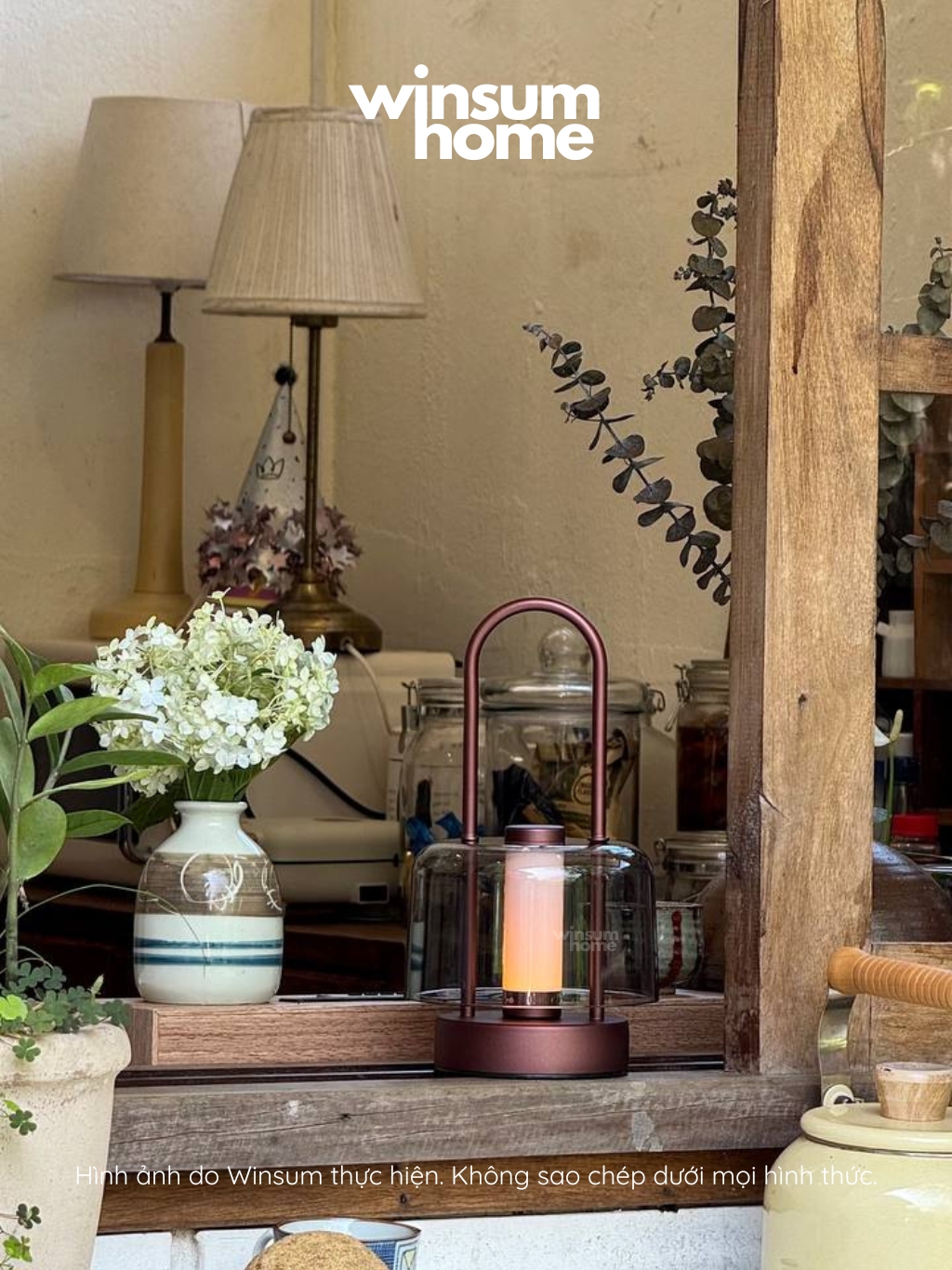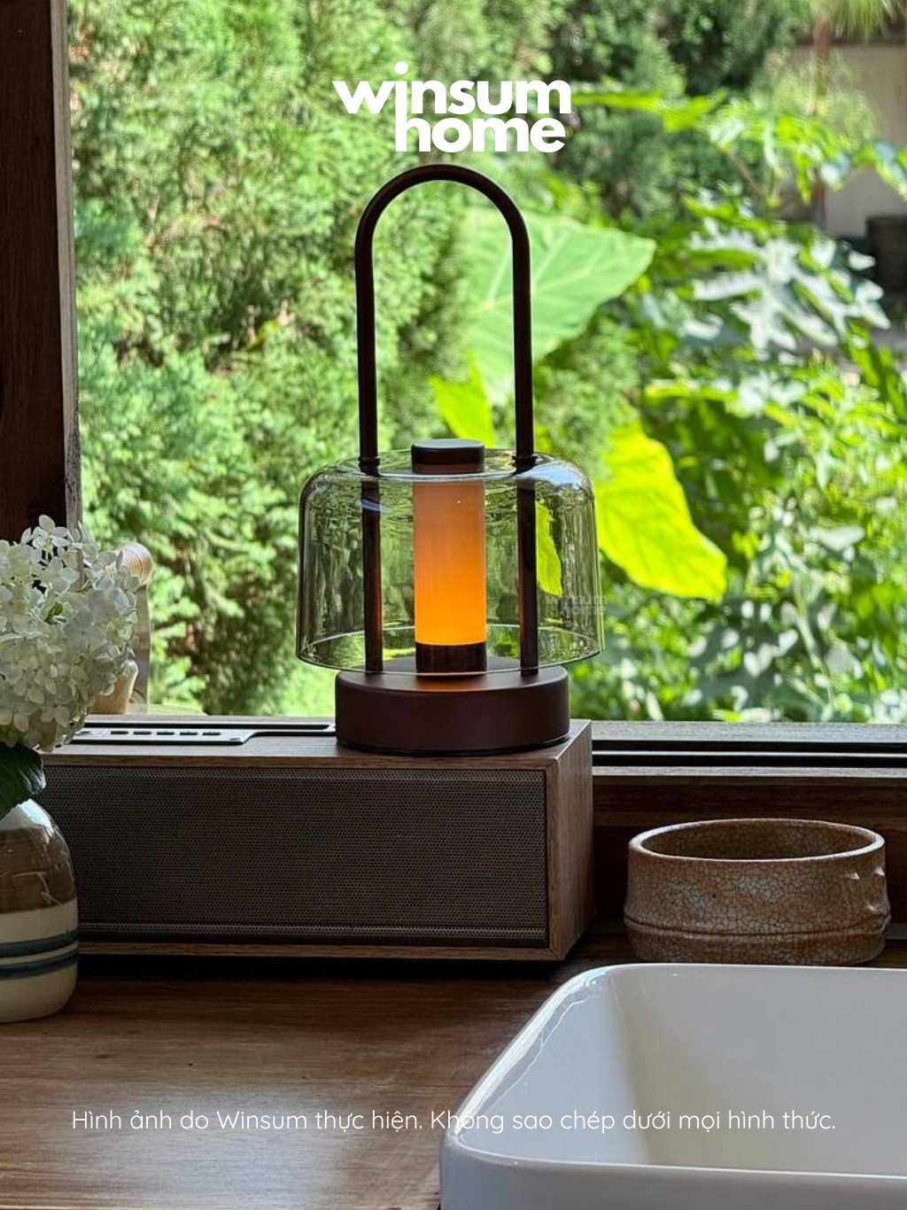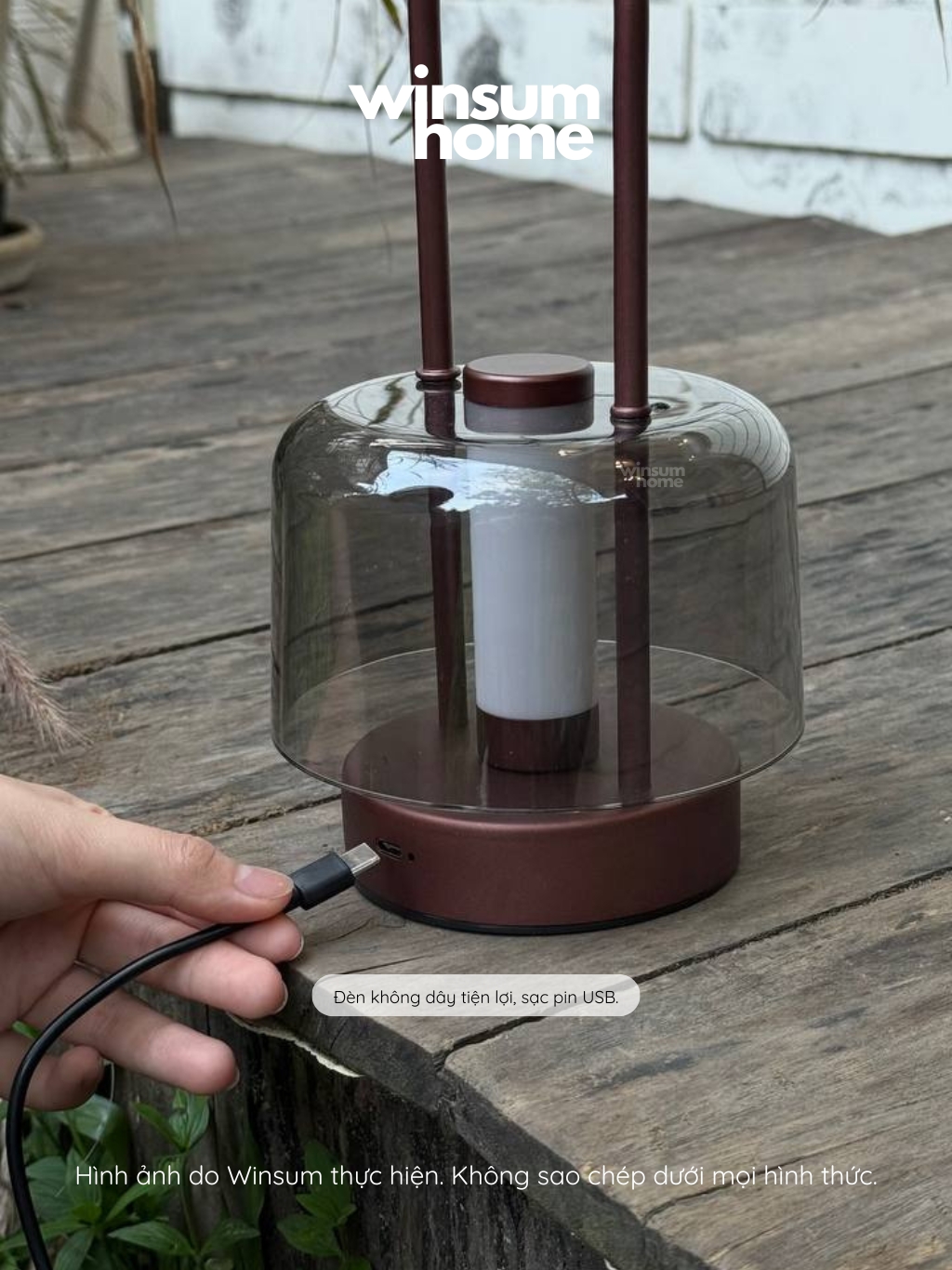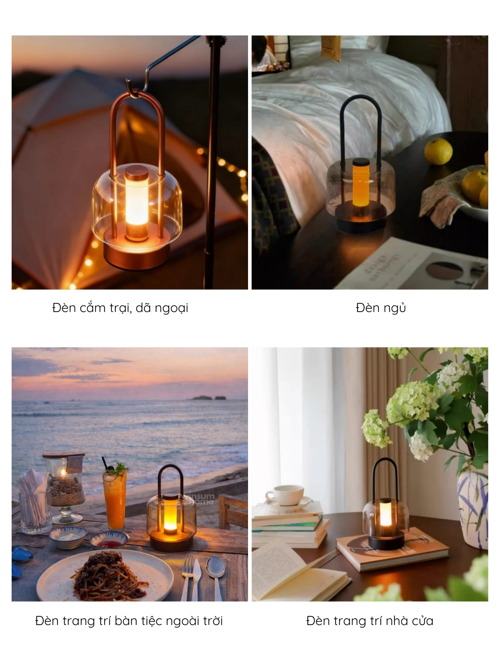 Đèn bàn LED thiết kế hiện đại với thân kim loại mờ kết hợp chụp đèn thủy tinh, tạo ánh sáng dịu nhẹ và sang trọng. Đèn có tay xách tiện lợi, có thể sử dụng linh hoạt trong nhà hoặc mang theo khi đi dã ngoại, cắm trại. Đèn hoạt động không dây, dễ dàng đặt ở bất kỳ vị trí nào.