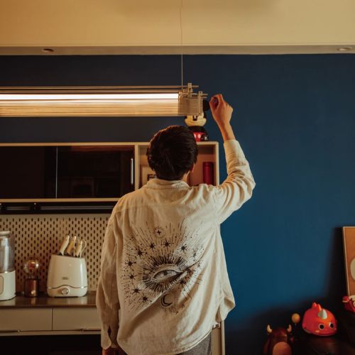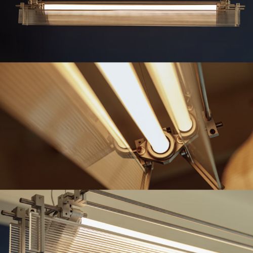 Thường được biết đến là một giải pháp tiện ích cho gia đình, chiếc đèn treo trần tích hợp giàn phơi đồ tự động lại mang trong mình một tiềm năng thẩm mỹ to lớn khi được ứng dụng trong không gian thương mại, đặc biệt là các quán cà phê theo phong cách Công nghiệp (Industrial) hoặc Hiện đại tối giản (Minimalist). Với thiết kế hình hộp chữ nhật thanh mảnh, cấu trúc cơ khí lộ ra ngoài bằng kim loại sáng bóng và các chi tiết dây cáp treo mảnh dẻ, chiếc đèn này không chỉ đơn thuần là nguồn sáng mà còn là một tác phẩm nghệ thuật Functional Art, tôn vinh vẻ đẹp của chức năng và vật liệu.
