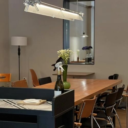 Khả năng điều khiển độ cao linh hoạt cho phép quán cà phê dễ dàng thay đổi không khí và sắp đặt trang trí theo các sự kiện hoặc thời điểm khác nhau trong ngày. Tóm lại, bằng cách phá vỡ giới hạn truyền thống của mình, chiếc đèn treo thông minh đã chứng minh tính linh hoạt của thiết kế hiện đại, trở thành một chi tiết kiến trúc độc đáo và đầy sáng tạo, nâng tầm trải nghiệm không gian của quán cà phê.
