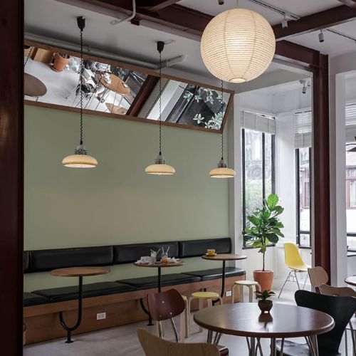 Ngoài ra, ánh sáng dịu nhẹ, tán rộng từ chao đèn lớn cũng rất thích hợp để tạo điểm nhấn ấm áp trong phòng khách hay góc đọc sách. Không chỉ giới hạn trong không gian gia đình, các quán cà phê, nhà hàng hoặc cửa hàng bán lẻ theo phong cách Retro, Vintage hoặc tối giản hiện đại cũng sẽ được nâng tầm nhờ vẻ ngoài cuốn hút và ánh sáng dễ chịu mà chiếc đèn mang lại.