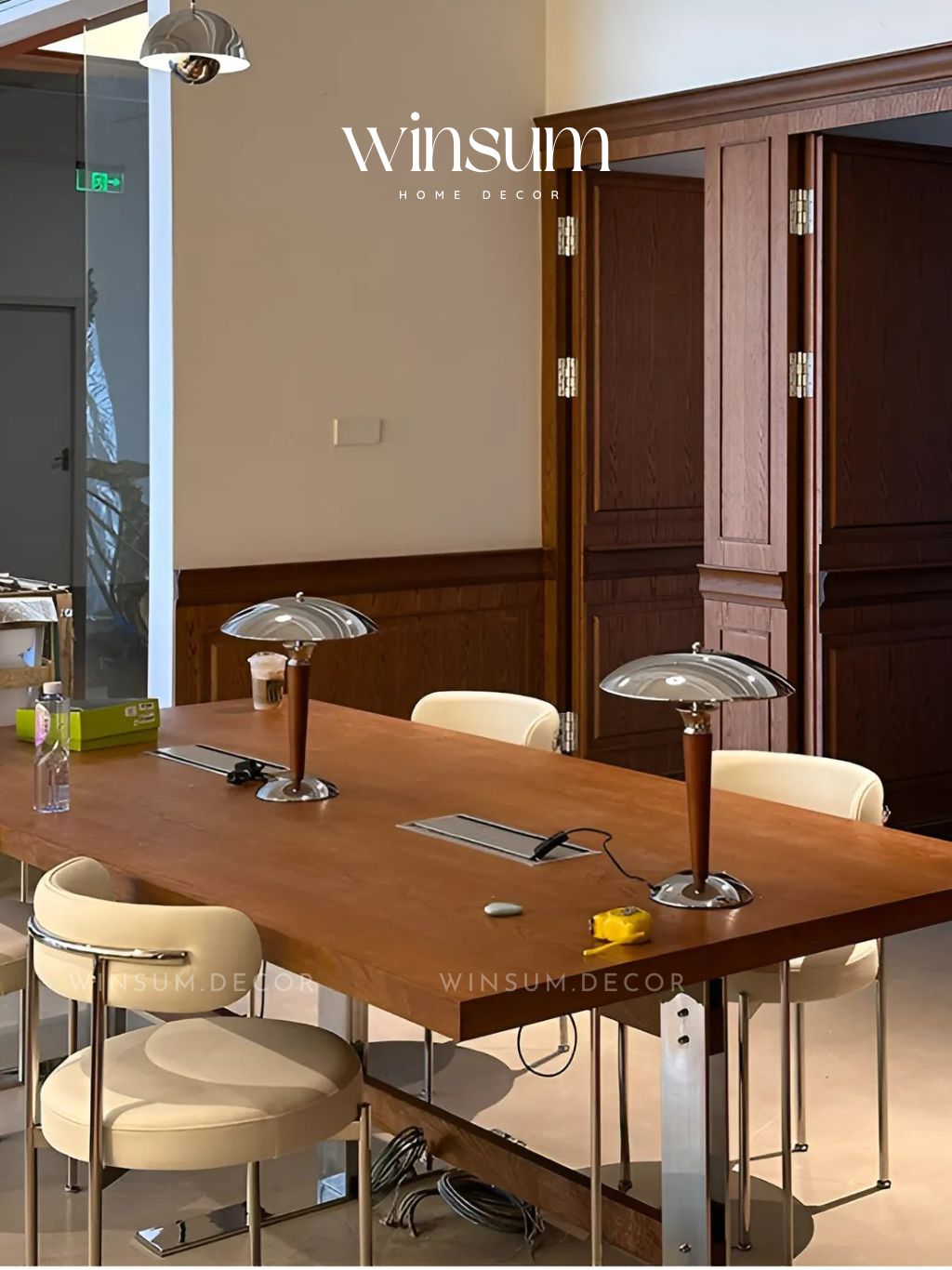 Cân nhắc kích thước: Đèn nên có tỷ lệ cân đối với bàn và tổng thể căn phòng. Một chiếc đèn quá lớn sẽ làm không gian chật chội, quá nhỏ sẽ bị lu mờ.
