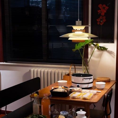 Tâm điểm Cộng đồng: PH 5 thường được treo thấp trên bàn ăn – trung tâm của đời sống gia đình Bắc Âu. Nó tạo ra một "mái vòm ánh sáng" ấm áp, mời gọi mọi người quây quần và trò chuyện.