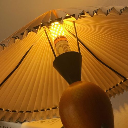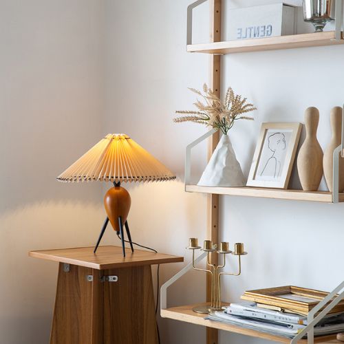 Điểm nhấn mạnh mẽ nhất chính là chao đèn xếp ly (pleated shade) rộng, gợi nhớ đến các thiết kế đèn huyền thoại như Poul Henningsen. Các nếp gấp tạo ra hiệu ứng ánh sáng kịch tính, mềm mại và phân tán đều, rất nghệ thuật.